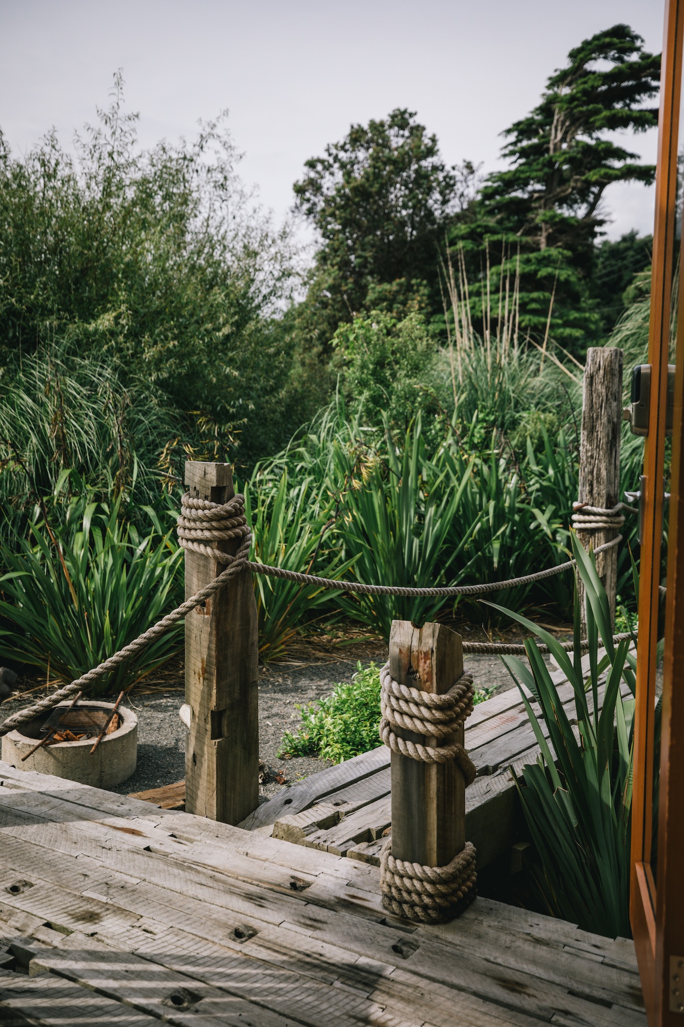 But once you pull in and park your car, you’ll quickly realize it’s set up to feel like you’re off the grid. You don’t hear or see any neighbors. Surrounded by native bush, there’s a little private path to the river.
