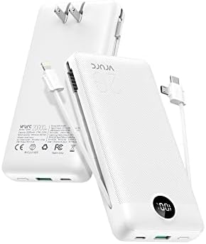 Power Bank With AC Wall Plug,VRURC 20000mAh Portable Charger,Built-in Micro,USB C Three Cables,22.5W QC 20W PD Fast Charging Battery Pack Compatible With iPhone Samsung Android iPad Smartphones-White