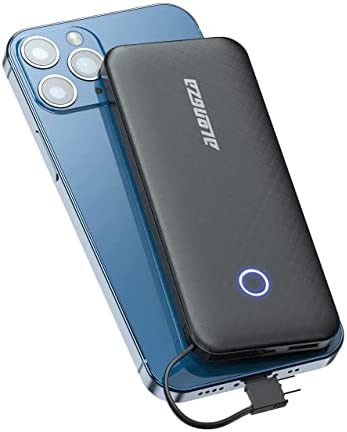 Portable Phone Charger Power Bank 10000mAh, Alongza Portable Charger Built in Cable USB Battery Pack, Slim External Backup Battery Charger with Cable, Travel Charger Compatible with iPhone and Android