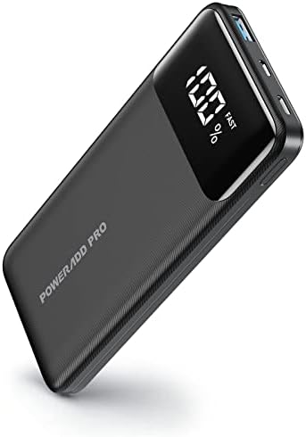 POWERADD PRO Portable Charger, USB C 10000mAh Power Bank LED Display PD 20W Fast Charging External Battery Pack Compatible with iPhone 14 13 12 11 Samsung S21 S20 Google LG iPad, etc. - Black