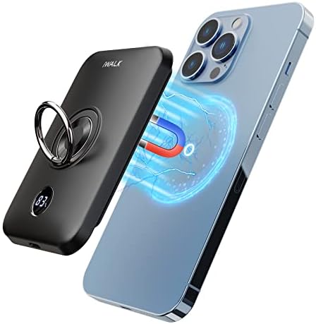 iWALK Magnetic Wireless Power Bank, 6000mAh Portable Charger with Finger Holder, Stronger Magnet Stick for Phone with Unique Mag-Suction Tech, Only Compatible with iPhone 14/13/12 Pro Max