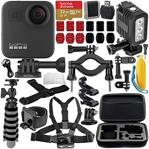 GoPro MAX 360 Action Camera with Deluxe Accessory Bundle – Includes: SanDisk Extreme 32GB microSDHC Memory Card, Rechargeable Underwater LED Light, Protective Carrying Case & Much More