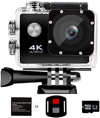 ã€VALUABLE ACCESSORIES】: This action camera has 20 mounts and accessories, including 1 rechargeable 900mAh battery (the battery is installed in the camera), 1 remote control, 1 32G SD card, and 17 other accessories. The kits are available for most cameras, even Gopro. The battery can record for up to 90 minutes. After-sales service: Please contact us in advance if you have any questions. We will solve your problem in time.