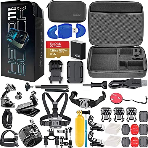 GoPro HERO11 Black - Waterproof Action Camera with 5.3K HD Video, 27MP Photos, Live Streaming, Webcam - Bundle with 128GB Memory Card, High Speed Card Reader + Hero 11 Action Bundle (58 Items)