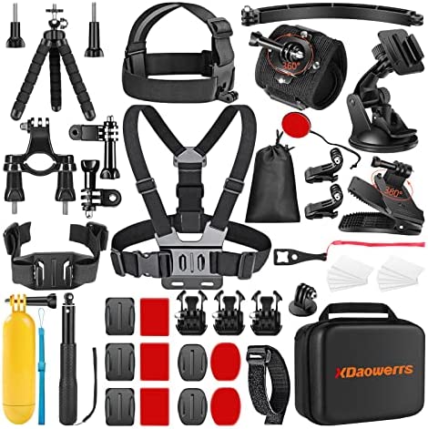 XDaowerrs Upgraded 50 in 1 Action Camera Accessories Kit for GoPro Hero11 10 9 8 7 6 5 4/GoPro Max/GoPro Fusion, Insta360, DJI Osmo Action1/2,Xiaomi Yi, APEMAN, AKASO Campark Action Camera and More