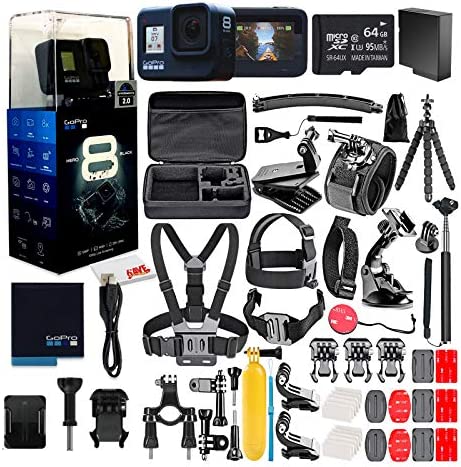 GoPro HERO8 Black Digital Action Camera - Waterproof, Touch Screen, 4K UHD Video, 12MP Photos, Live Streaming, Stabilization - with 50 Piece Accessory Kit + 64GB Memory Card + Extra Battery