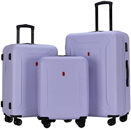 Widfre Luggage Sets 3 Pieces Carry on Suitcase Hardshell Lightweight Travel with Double Spinner Wheels Locks TSA Approved (Purple)